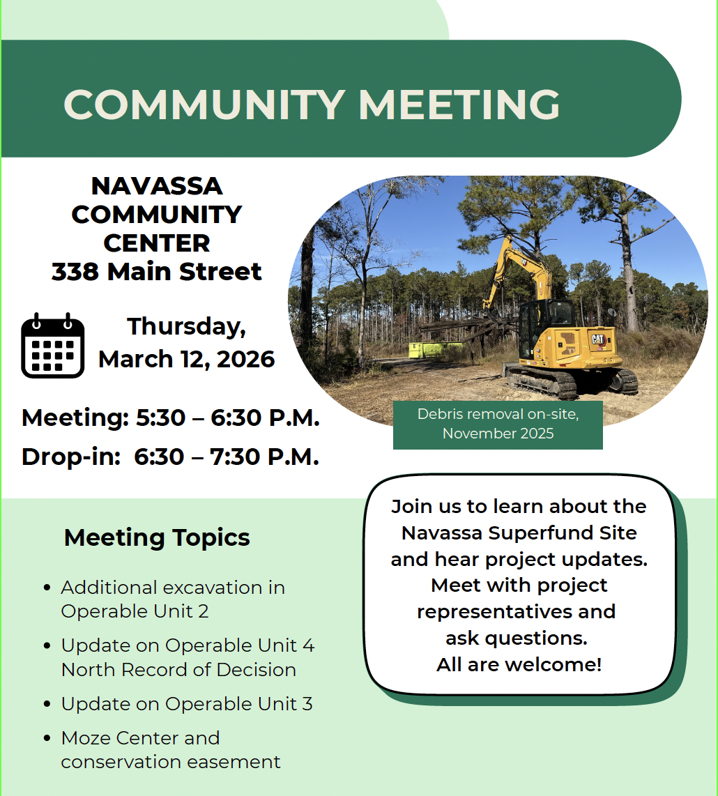 The Multistate Trust, together with EPA and NCDEQ, is hosting its first community meeting of the year to provide updates about work and investigations at the Navassa Site.